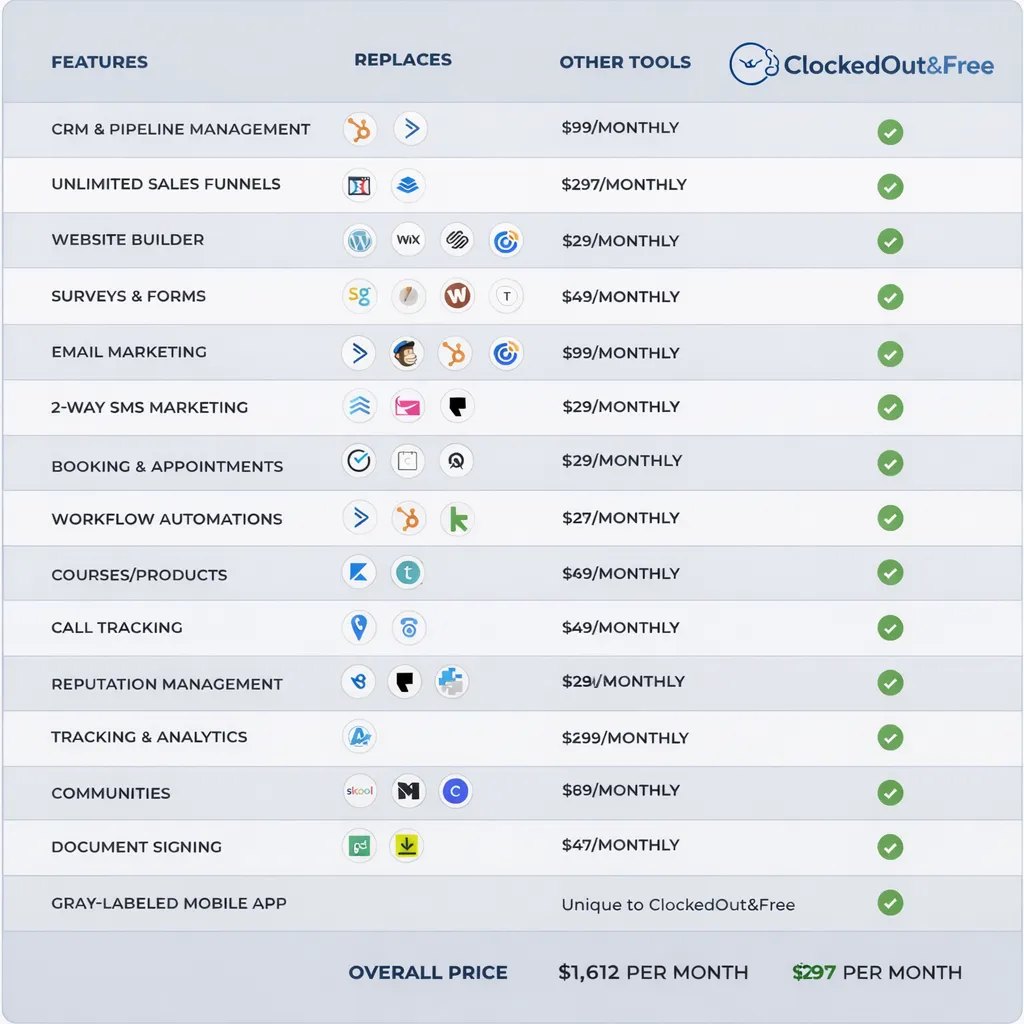 Clocked Out & Free is a self-serve business platform that helps creators, coaches, and service providers manage leads, conversations, bookings, follow-ups, and campaigns from one system.
