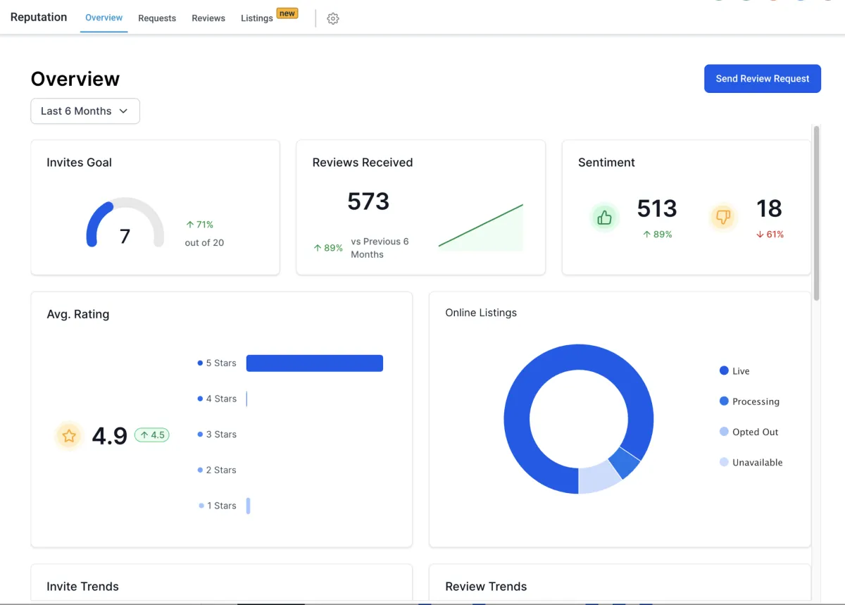 Display your success and build trust with a customizable review widget. Place this widget on unlimited websites, and anywhere an embed is allowed. Or use natively in our website and landing page builder.