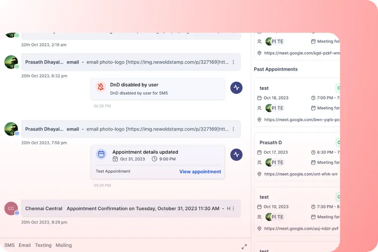 Emails, texts, and messages stay attached to the contact record so you always know what’s happening.