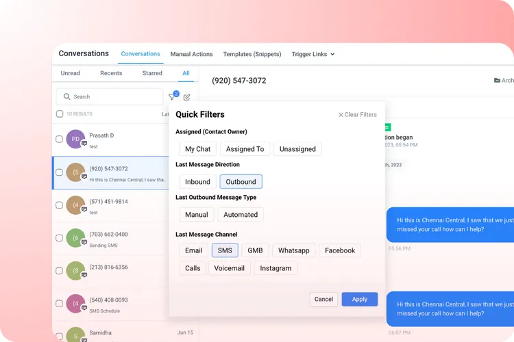Escape jumping between apps to talk to your customers, our easy to use conversations tab brings all customer interactions across multiple channels, to one location.